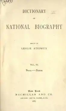 Title Dictionary of National Biography, 1885-1900, vol. 4 Beal - Biber