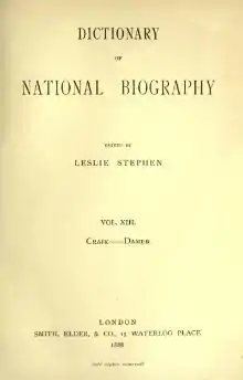 Title Dictionary of National Biography, 1885-1900, Vol 13 Craik - Damer