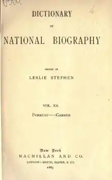 The Dictionary of National Biography (DNB) is a standard work of reference on notable figures from British history. It was originally published in 63 volumes between 1885 and 1900.