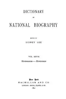Title Dictionary of National Biography, 1885-1900, Vol 27 Hindmarsh - Hovenden