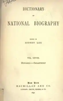 Title Dictionary of National Biography, 1885-1900, Vol 28 Howard - Inglethorpe