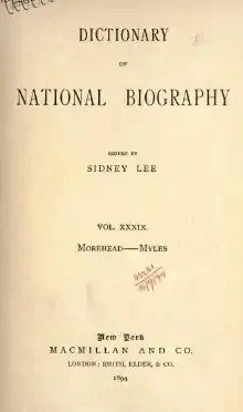 Title Dictionary of National Biography, 1885-1900, vol. 39 Morehead - Myles