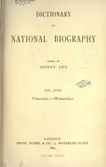Title Dictionary of National Biography, 1885-1900, Vol 58 Ubaldini - Wakefield