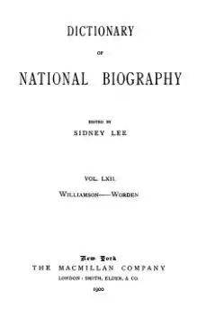Title Dictionary of National Biography, 1885-1900, Vol. 62 Williamson - Worden