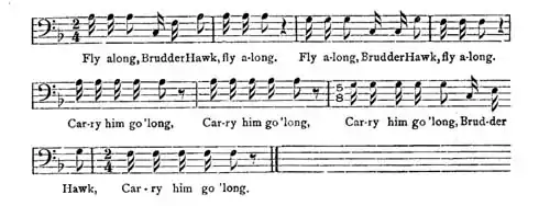 Fly along, Brudder Hawk, fly a-long. Fly a-long, Brudder Hawk, fly a-long.