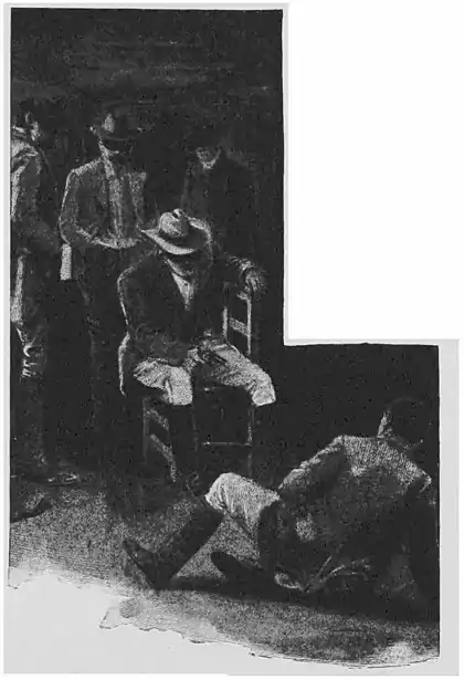 He was standing, as usual the most nattily dressed man in the place, with one elbow resting on the bar counter, and a glass half full of whisky and soda beside him. Opposite to him stood no less a personage than Mr. Michael Mosenstein—the events herein to be described happened some two months after Jossey Mo's vicarious conviction—and there seemed to be a discussion of some little heat going on between them. Just as they went in he slapped his glass down on the mahogany, and said in a loud, angry tone: