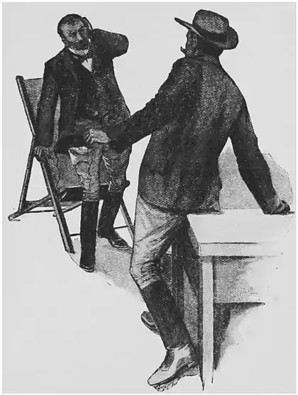 With this he drank off the remains of his whisky and soda, and turned and walked to the door, followed by his official satellite, not a little pleased at such an opportunely good "get out" from a situation which was bidding fair to become embarrassing.