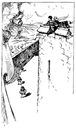 “Get out on to the window-sill,” said he, “and twist your hair three times round the great iron hook that is there.”