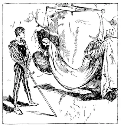 The King and Queen and nurse busily packed it, as it grew, into the other scale, and gradually the scale went down a little. The Prince stood waiting between the scales with his drawn sword, and just before the two were equal he struck. But during the time his sword took to flash through the air the Princess’s hair grew a yard or two, so that at the instant when he struck the balance was true.
