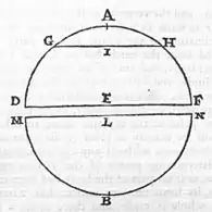 uppose A B to be a terrella, whose centre is E, and whose diameter (as also its æquinoctial circle) is D F. If you cut off a portion (through the arctic circle, for example), G H, it is demonstrable that the pole which was at A now has a position at I. But the centre and the æquinoctial recede toward B merely so that they are always in the middle of the mass that is left between the plane of the arctick circle G I H and the antarctick pole B. Therefore the segment of the terrella comprised between the plane of the former æquinoctial (that, of course, which was the æquator before cutting that part away) D E F and the newly acquired æquator M L N will always be equal to the half of that part which was cut off, G I H A.