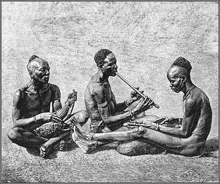 Shuli, and Shilluks, showing affinities rather with that of the Niam-Niam. This difference in speech and resemblance in customs is doubtless due to the presence of two ethnical elements now fused in one nation. The foreign intruders probably came from the south-west, where the Madi occupy the water-parting between the Nile and Congo basins, and where they are conterminous with the Kalika, allied to them in speech and origin.: