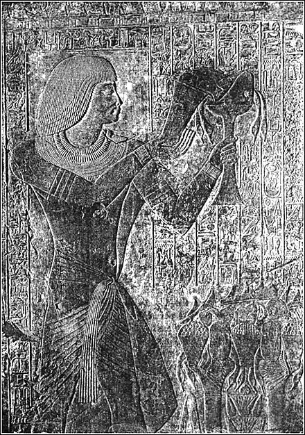 Fig. 100. — Egyptian Type: Bas-Relief ornamenting the Tombs oy Sheikh Ard-el-Gurnah, at Thebes.
