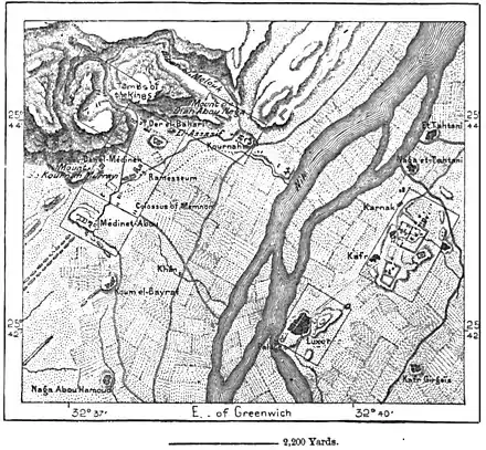 right bank of the Nile. During the inundations the groups of monuments here still rise like islets in the midst of the waters.