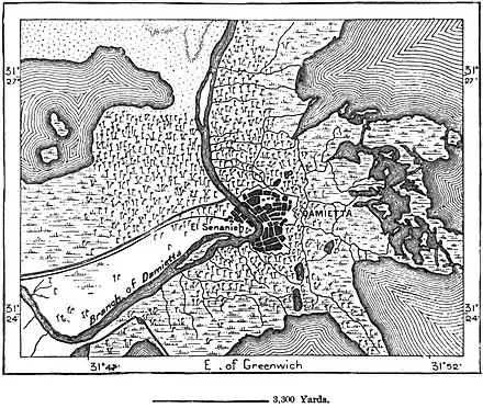 in the part of the delta comprised between the two branches of Damietta and Rosetta, a few commercial towns are scattered in the midst of the canals and irrigation works. Such are Menuf, which gives its name to the large Menufieh Raya, or canal, where have been found the fragments of a trilingual stone, Shibin-el-Kour,
