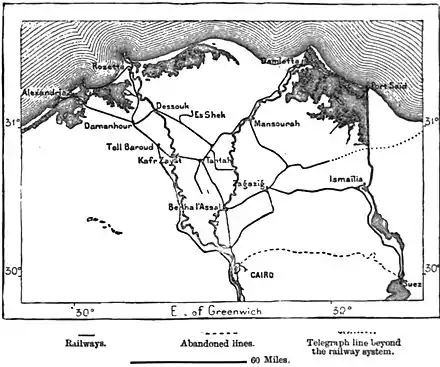 From the head of the delta the network of railways is continued along the