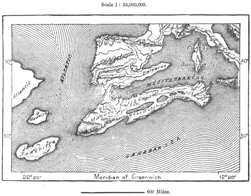 The Atlas Mountains, which constitute the backbone of Mauritania, and which would justify its being called by the name of Atlantis, apparently applied to it about the dawn of written history, forms a continuous orographic system from the Atlantic Ocean to the Sicilian waters. But they do not develop themselves in a