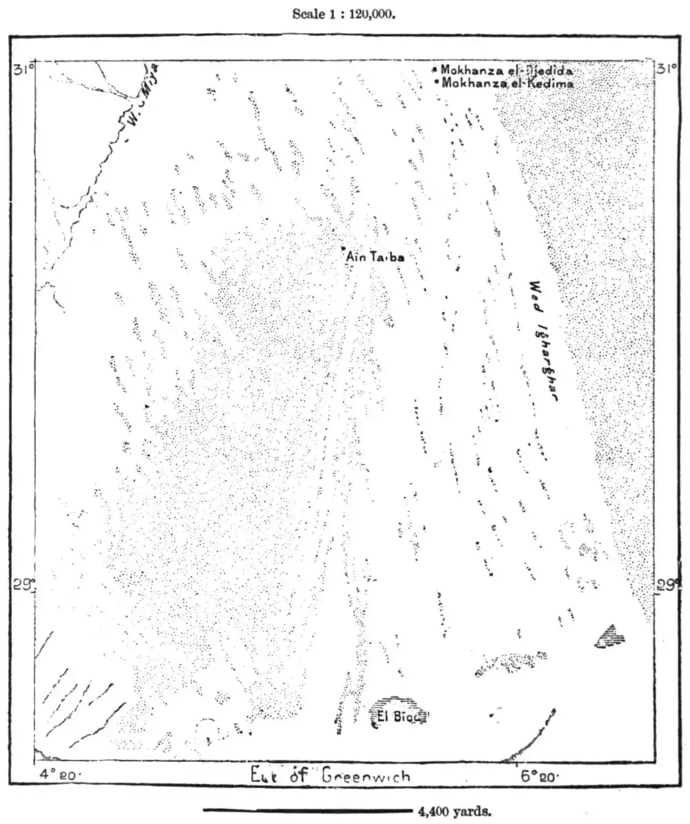 In the eastern Erg some of the crests are much higher than those of the French dunes on the Gascony coast. The Ghurd El-Khadem, measured by MM. Largeau, Say, and Lemay, has a height of 450 feet, and others are said to reach 490 feet, within 40 of that measured by Vogel near the "Lake of Worms," in