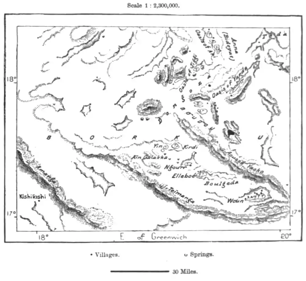 The Dazas of Borku are even still less numerous than the kindred Tedas of Tibesti, although their territory might support a far larger population. Nachtigal estimates them at five thousand at the utmost, while the nomads of the same region, mostly belonging to the Bulgeda nation, may number, perhaps, from five thousand to seven thousand. Partly agriculturists, partly stockbreeders, the Dazas and Bulgeda differ little from the Tibesti highlanders. Like them they are thin, energetic, and intelligent, usually exempt from disease, but less favoured with physical beauty. In this respect they form, from the ethnological standpoint, the transition between the Tibbus and the true Negroes bordering on Lake Tsad. Their speech also resembles that of the Tibbus, Zoghawas, and other branches of this group. The Duzas score the temples with two vertical incisions scarcely