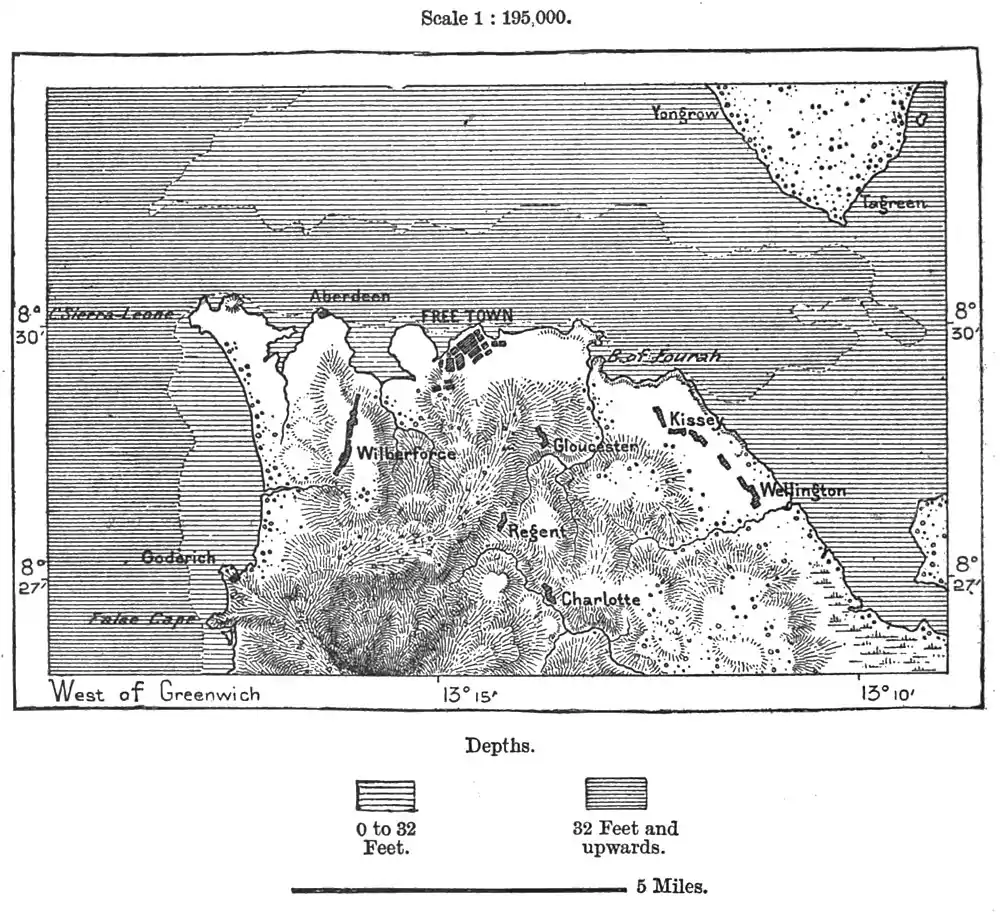 and coral from village to village, living like the natives, and enduring hardships and privations such as would kill any European unaccustomed to such an existence. Thanks to these intrepid dealers, the retail trade has acquired a certain importance, while wholesale transactions have declined since Freetown has ceased to be the capital. of all the English West African possessions. The policy followed by the Government towards the tribal chiefs has also proved ruinous to the trade of the country. Faithful to their theory of armed non-intervention, the English send no troops inland, but they subsidise the chiefs on the condition of their keeping the routes open. These subsidies, however, are mostly devoted to the purchase of arms and munitions of war, with the result that conflicts are constantly breaking