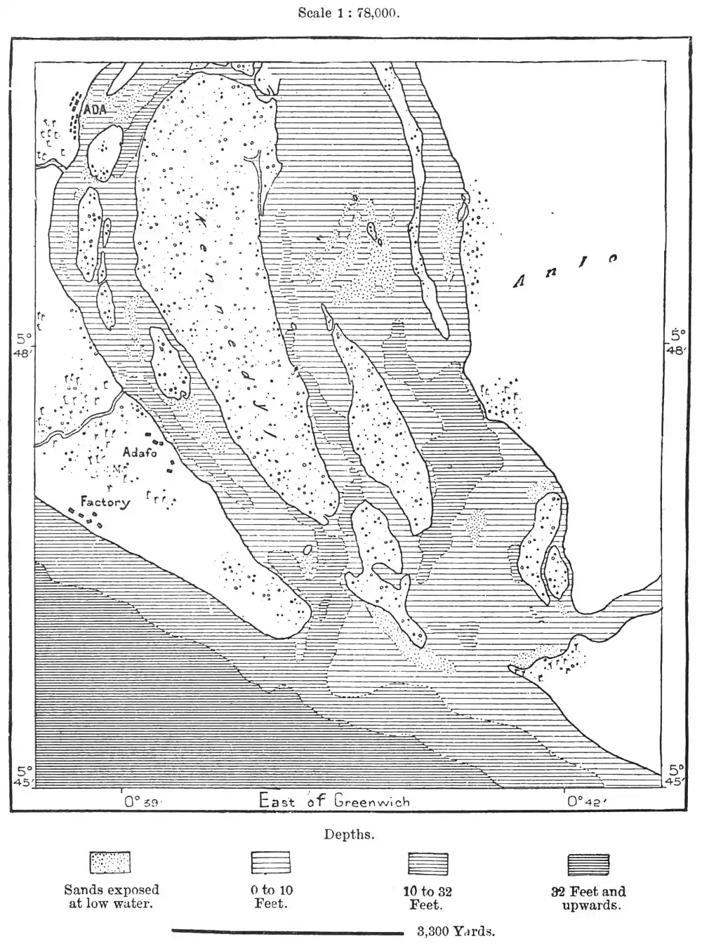 by the Basle missionaries as the centre of their stations. Nearly opposite the Afram confluence lies Peki, capital of a confederacy including several towns, such as the large Mohammedan markets of Kpando, Angvoé, Avatimé, the triple city of Anum, and over a hundred villages on the eastern watershed of the Volta basin. Farther down follow Akuamu, former ally of Ashanti, and like it noted for its