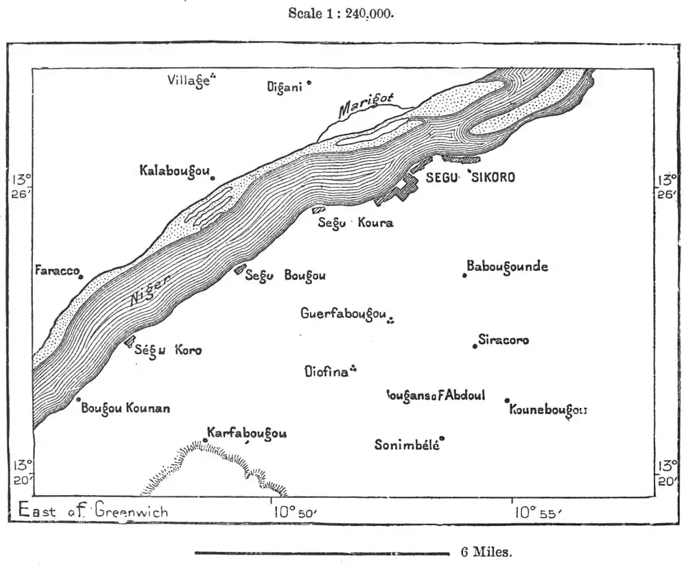 Although in a state of decadence, Segu is still one of the great riverain cities of the Niger. Till recently it was the capital of a vast empire, covering an area of about 200,000 square miles between Kaarta and Wassulu in one direction, and