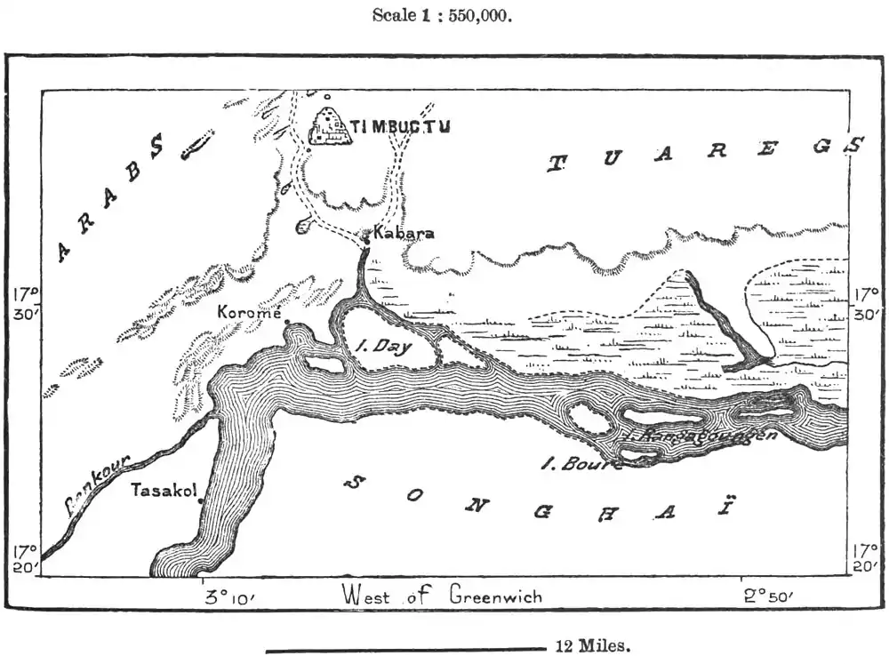 The Songhais (Sonrhai, Sourhai) occupy both banks of the Middle Niger between Timbuktu and the Sokoto confluence, penetrating far inland within the great bend, where their speech is current as far as the lacustrine district below Jenné. Although now a degraded people, the Songhais had their epoch of splendour and dominion. After overthrowing the Mandingan emperor, enthroned