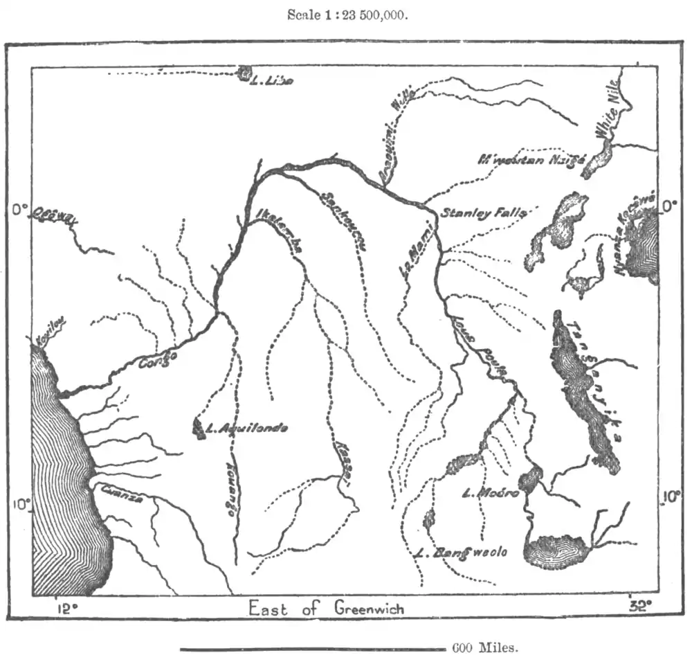 who in 1874 had discovered the emissary of the lake to the Upper Congo, also explored others of its headstreams, and crossed the divide between the Congo and the Zambese, being the first of modern travellers to complete the journey across the continent, from Zanzibar on the Indian to Benguella on the Atlantic Ocean."