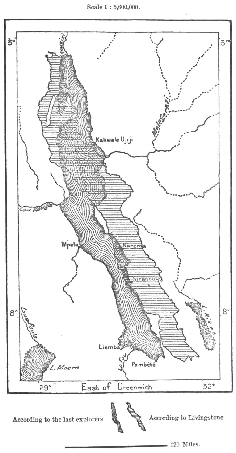 Of all the Central African lacustrine basins, Tanganyika is now the best known, and a comparative study of Livingstone's map with accurate subsequent measurements shows that it had already been carefully surveyed by the first explorers. From Pambete Bay at the southern to the Ru-Sizi mouth at the
