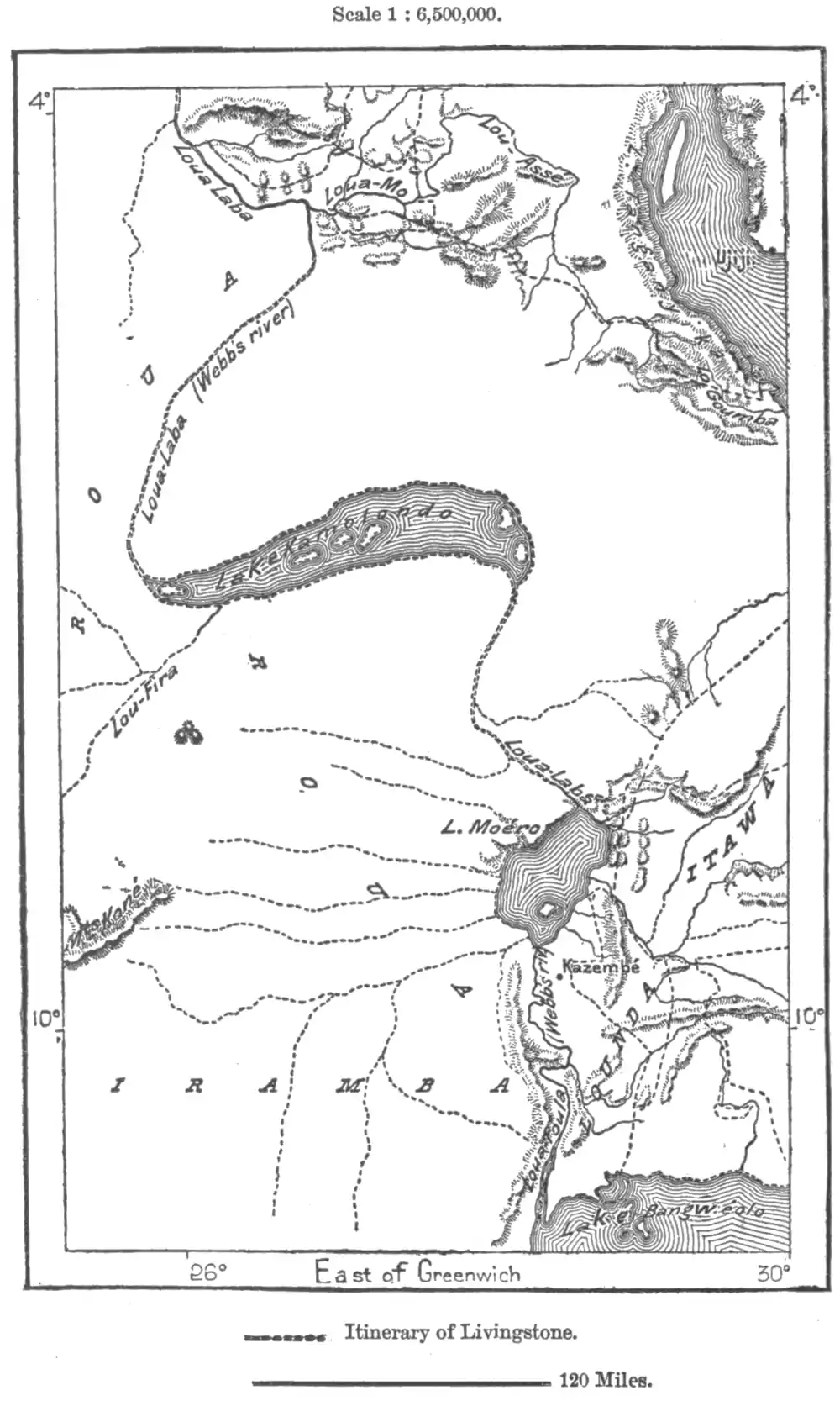Fig. 223. — Lake Bangwelo and the Lower Lua Laba according to Livingstone.