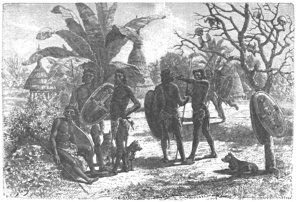 Fig. 242. — Group of Niam-Niams and their Dwellings.