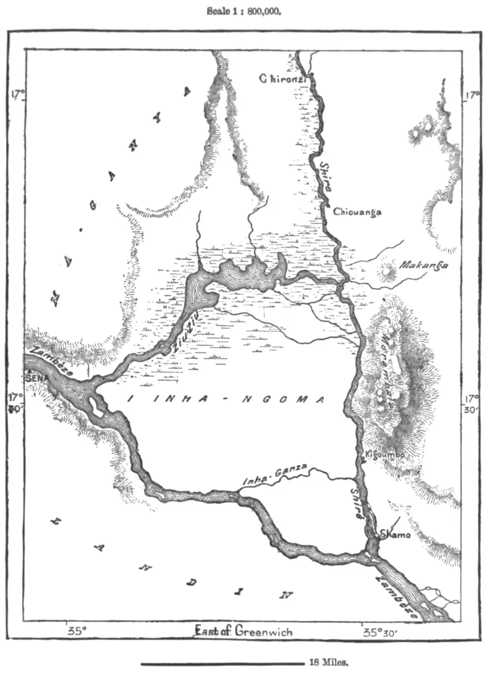 South of the confluence of the Ruo or Luo, which flows from the Blantyre uplands, and which is navigable by boats for 50 miles, a huge nearly isolated and