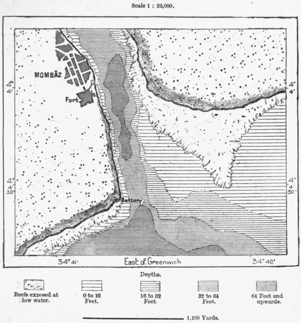 Mombaz, the Mombasa of the Arabs, the Mvita of the Swaheli traders, the city sung by Camoens in the "Lusiad," was already a famous place even before the arrival of the Portuguese navigators. In the fourteenth century it was the residence of the king of the Zenj state, and was at that time described as "a great city visited by ships." When Vasco de Gama came to survey the entrance to its port he ran an imminent risk of being taken prisoner. So fur from increasing the commercial activity of Mombaz, the appearance of the Portuguese in these waters marked the
