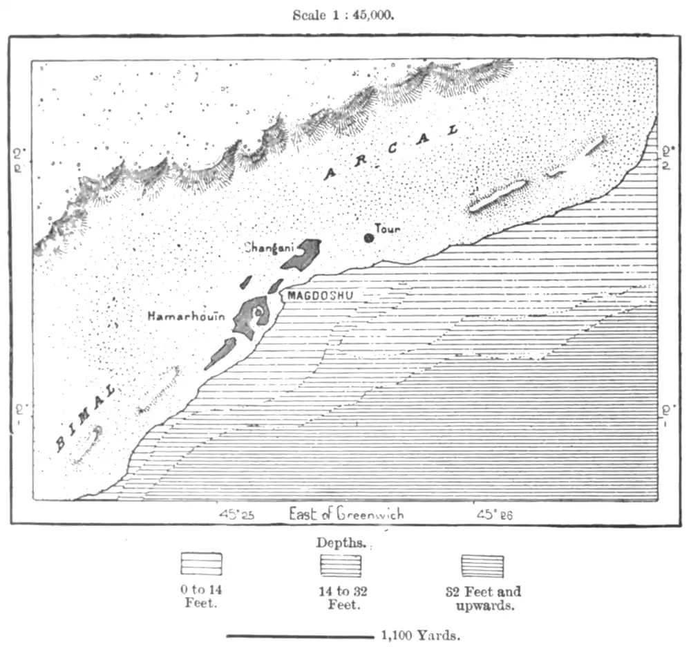Magdoshu comprises two distinct quarters, Hamarhiwin and Shingani, the former of which has been almost abandoned and is now gradually becoming a heap of ruins. In Shingani are at present concentrated most of the inhabitants, numbering