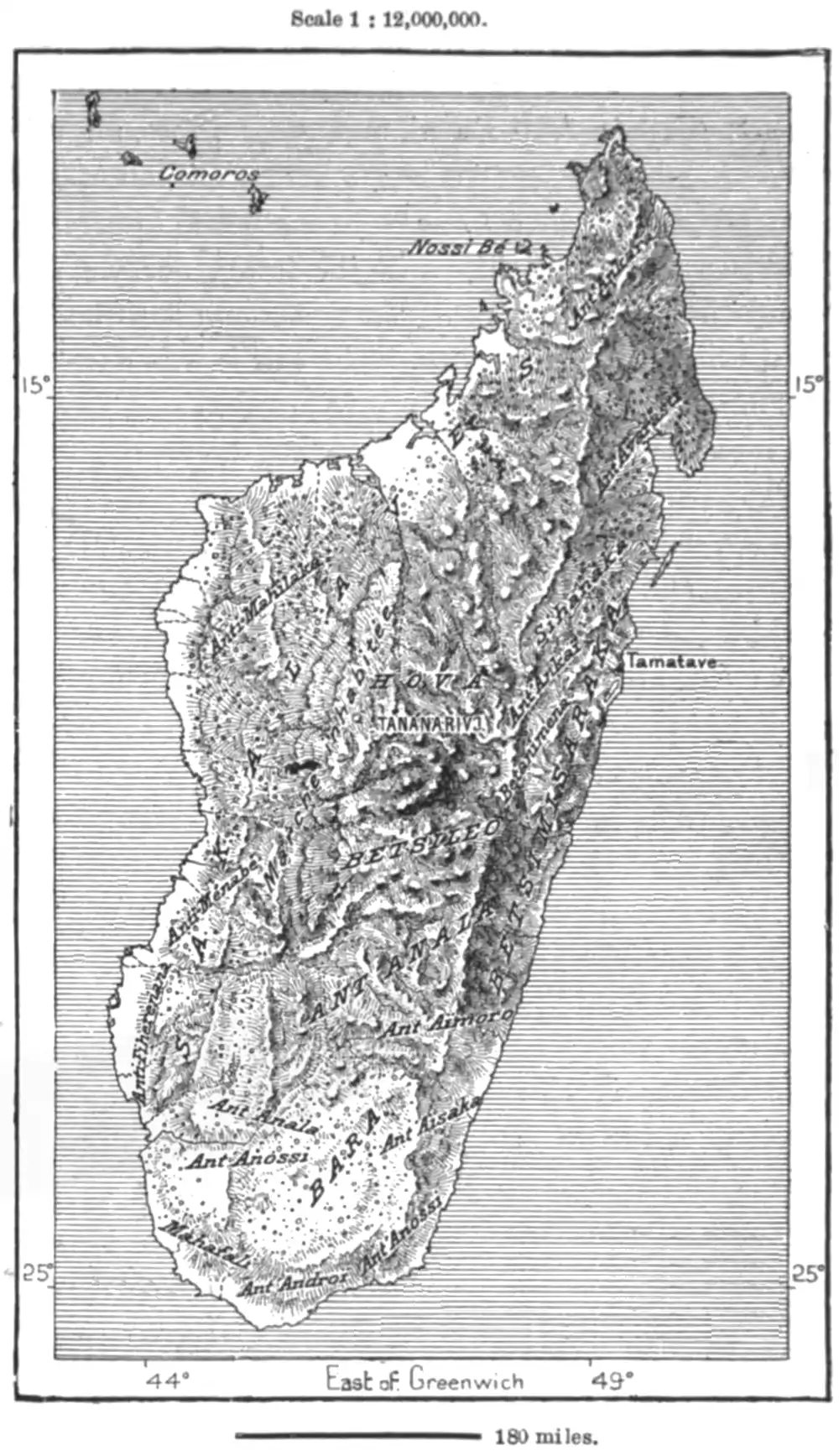 A vast part of the territory encircling the central province of Imerina is still almost uninhabited, especially in the western districts. In this direction stretch extensive wildernesses, where the traveller may journey for days together without meeting a single group of habitations. To these frontier tracts the English explorers have given the name of No Man's Land; according to Grandidier they neither are nor can be inhabited.
