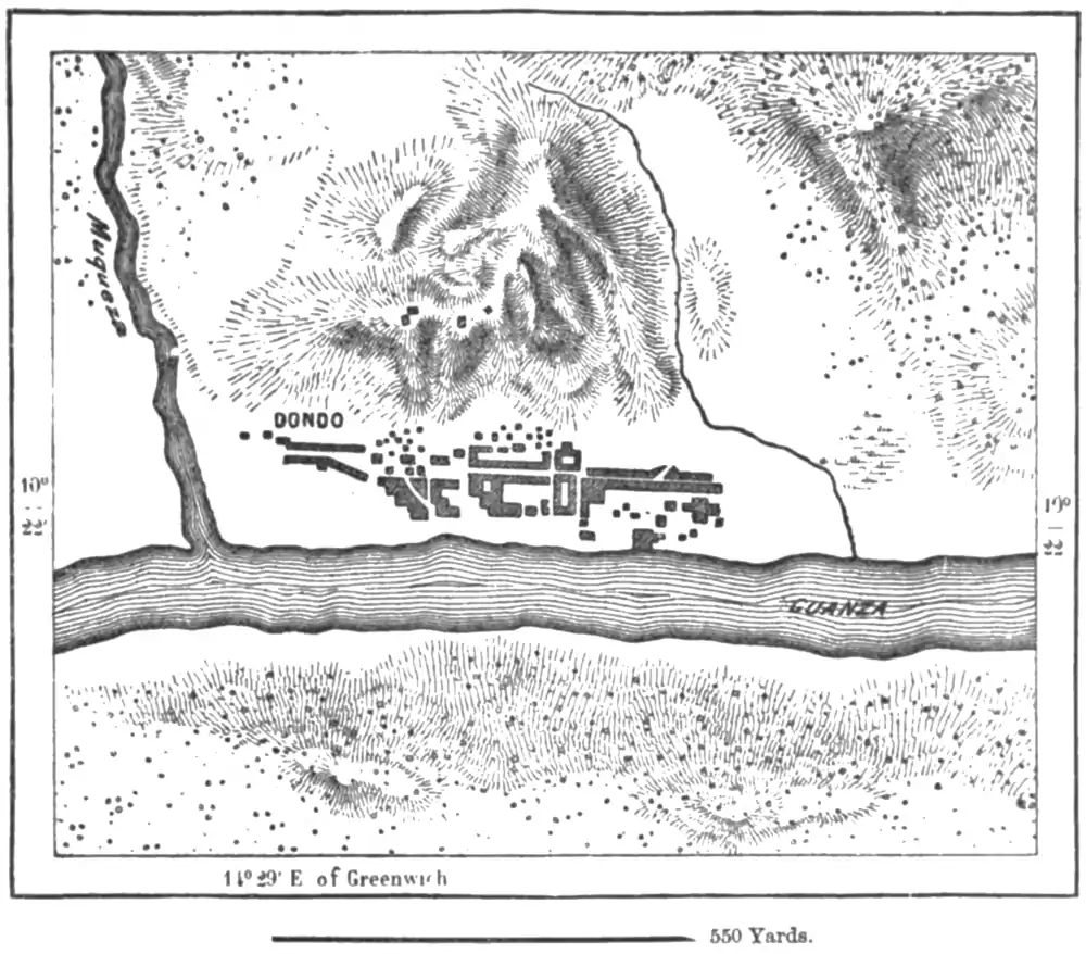 The only station on the left bank of the Lower Cuanza is Muzxima (Mushima), crowning the summit of a limestone hill, whence an extensive view is commanded of the territory of the savage Quissama tribes. Above a group of hovels at the
