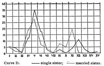 Curve D. Two sisters living together. The dotted line represents the married sister.