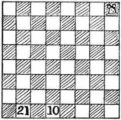 a personally conducted holiday tour that ended by leaving us, say, in the middle of the Sahara. The rook here makes twenty-one moves, in the