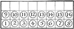 of your chessboard. I have shown numbered counters in the illustration so as to make the