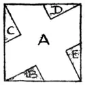 It will be seen that every one of these puzzles has its reverse puzzle—to cut a square into pieces to form a Greek cross. But as a square has not so many angles as the cross, it is not always equally easy to discover the true directions of the cuts. Yet in the case of the examples given, I will leave the reader to determine their direction for himself, as they are rather obvious from the diagrams.