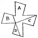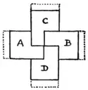 the pieces A and B will form the cross in Fig. 19 and the pieces C and D the similar cross in Fig. 20, In this square we have another form of Swastika.