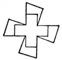 In these cutting-out puzzles it is necessary not only to get the directions of the cutting lines as correct as possible, but to remember that these lines have no width. If after cutting up one of the crosses in a manner indicated in these articles you find that the pieces do not exactly fit to form a square, you may be certain that the fault is entirely your own. Either your cross was not exactly drawn, or your cuts were not made quite in the right directions, or (if you used wood and a fretsaw) your saw was not sufficiently fine. If you cut out the puzzles in paper with scissors, or in cardboard with a penknife, no material is lost; but with a saw, however fine, there is a certain loss. In the case of most puzzles this slight loss is not sufficient to be appreciable, if the puzzle is cut out on a large scale, but there have been instances where I have found it desirable to draw and cut out each part separately—not from one diagram—in order to produce a perfect result.