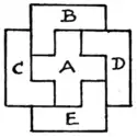 I give another puzzle in Fig. 36. The dotted lines are added merely to show the correct proportions of the figure—a square of 25 cells with the four corner cells cut out. The puzzle is to cut this figure into five pieces that will form a Greek cross (entire) and a square.