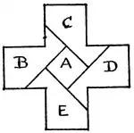 Cut a Greek cross into five pieces that will form two separate squares, one of which shall contain half the area of one of the arms of the cross. In further illustration of what I have