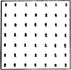 Puzzles of this class, except so far as they occur in connection with actual games, such as chess, seem to be a comparatively modern introduction. Mathematicians in recent times, notably Vandermonde and Reiss, have devoted some attention to them, but they do not appear to have been considered by the old writers. So far as games with counters are concerned, perhaps the most ancient and widely known in old times is "Nine Men's Morris" (known also, as I shall show, under a great many other names), unless the simpler game, distinctly mentioned in the works of Ovid (No. 110, "Ovid's Game," in The Canterbury Puzzles), from which "Noughts and Crosses" seems to be derived, is still more ancient.