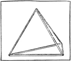 In how many different ways may the triangular pyramid be coloured, using in every case one, two, three, or four colours of the solar spectrum? Of course a side can only receive a single colour, and no side can be left uncoloured. But there is one point that I must make quite clear. The four sides are not to be regarded as individually distinct. That is to say, if you paint your pyramid as shown in Fig. 2 (where the bottom side is green and the other side that is out of view is yellow), and then paint another in the order shown in Fig. 3, these are really both the same and count as one way. For if you tilt over No. 2 to the right it will so fall as to represent No. 3. The avoidance of repetitions of this kind is the real puzzle of the thing. If a coloured pyramid cannot be placed so that it exactly resembles in its colours and their relative order another pyramid, then they are different. Remember that one way would be to colour all the four sides red, another to colour two sides green, and the remaining sides yellow and blue; and so on.