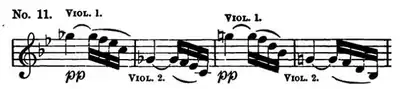 which, however, after a short existence of four bars, is dissolved into an astounding passage of semiquavers for all the Strings (except the Basses) in unison and sempre pianissimo, leading into an episode entirely different and distinct from anything that has come before it, and of the most beautiful effect:—