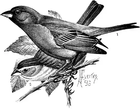 Indigo Bunting. 1. Male2. Female Length, 5.50 inches.