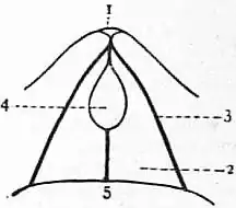 | Fig. 32.—Diagram of the pedicle-opening of Rhynchonella. Magnified. |