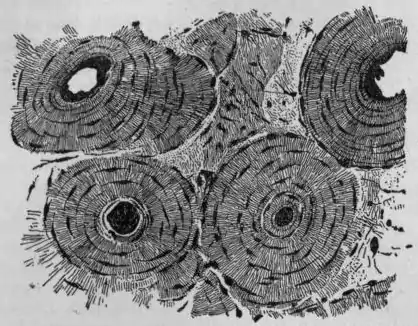 Fig. 8.—Section of Bone. Showing four Haversian systems and
