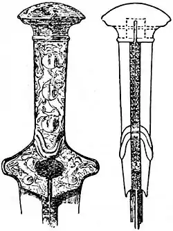 inserted in the flat surfaces of the dagger-blades. In part also the